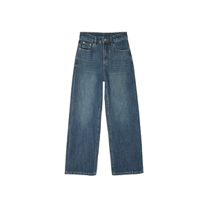 牛仔裤高腰阔腿裤水洗蓝