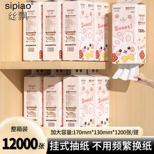 丝飘悬挂式抽纸12000张/10提整箱装家用实惠装餐巾纸面巾纸卫生纸