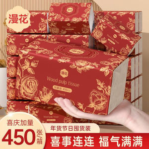 漫花喜庆抽纸大包面巾纸卫生纸四边压花擦手用纸批发整箱餐巾纸巾