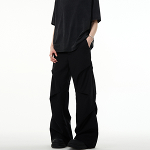 MADWITCH褶皱设计宽松微喇休闲裤