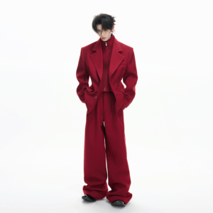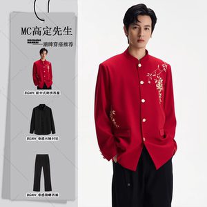 新中式国风西装高端绣花立领休闲西服中山装外套红色订婚结婚礼服