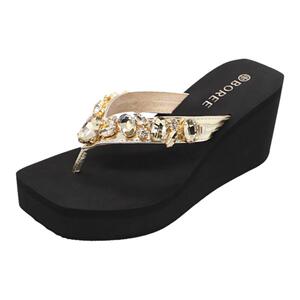 宝人时尚高级感水钻厚底人字拖