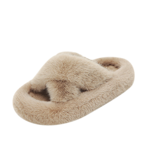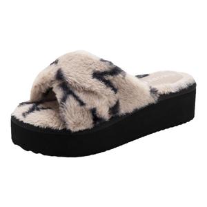 宝人厚底毛毛拖鞋女外穿2025秋冬松糕厚底增高网红交叉款居家棉拖
