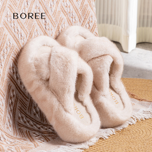 Boree/宝人厚底洞洞鞋冬季保暖加绒女士可外穿增高加棉毛毛拖鞋