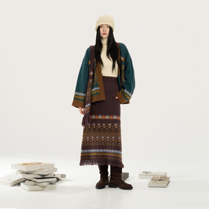 织造司[牧诗]国风毛衣开衫外套女2025新款针织高领打底衫半身裙子