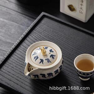 霖松堂陶瓷茶具草木灰手绘青花梵文系列泡茶壶公杯壶承茶杯盖碗