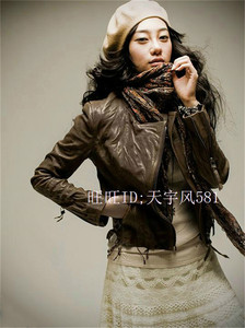 韩版新款真皮皮衣女百搭款皱褶机车皮衣女式修身短款外套咖啡色