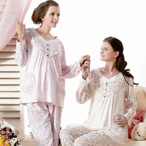 雅孕夏季长袖月子服哺乳孕妇睡衣