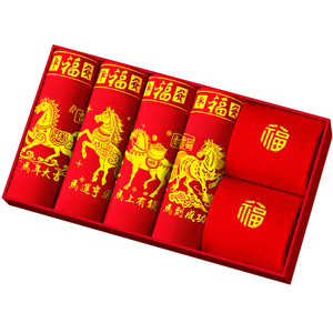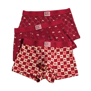 雅鹿本命年男士内裤纯棉男款平角裤大红色结婚属马年四角短裤大码