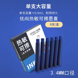 优尚(oaso)X600钢笔墨囊可替换小学生三年级用热敏可擦3.4口径一次性墨胆黑色晶蓝蓝黑