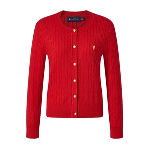 【红色款】POLOWALK女式长袖针织衫2026春季新品红色绞花针织开衫