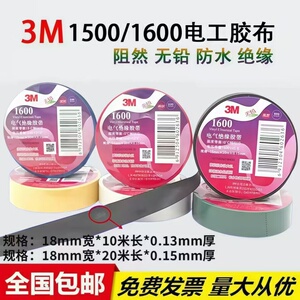 3M1600电工胶带绝缘胶带阻燃耐高温电线绝缘胶布家用汽车用胶带