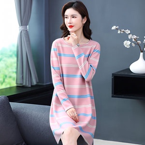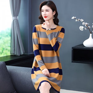 春秋多巴胺条纹显瘦遮肚妈妈装