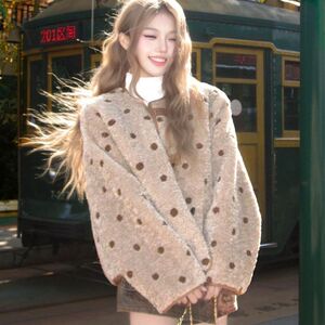 美式慵懒毛茸波点羊羔毛女款上衣