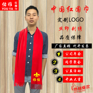 年会红围巾定制logo印刷活动聚会结婚过寿团建大红色定制宗亲开普