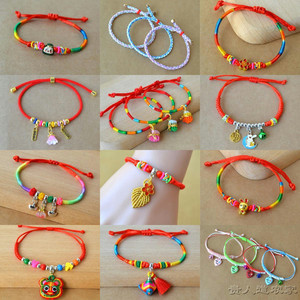 平安扣红绳手链手工编织仿玉石平安扣端午节五彩绳手链