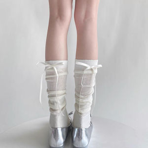 断色清仓!夏季镂空网眼芭蕾风堆堆袜后跟丝带蝴蝶结纯棉小腿袜子