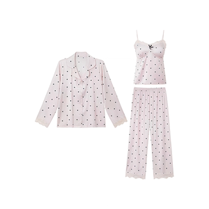 真丝睡衣女款带胸垫三件套家居服