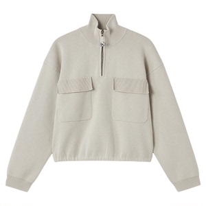 Two little guys*天丝羊毛小高领褶皱针织打底长袖上衣Oat ash