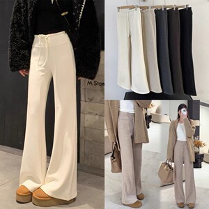 米白色加绒微喇女2025年新款秋冬季糯米阔腿裤高腰垂坠感显高喇叭