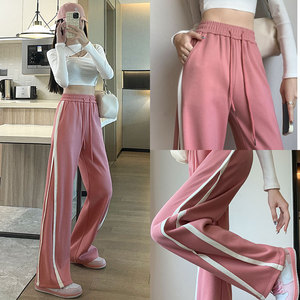 灰色印花拼接阔腿休闲运动裤女秋季2024新款慵懒松弛感直筒裤长裤