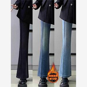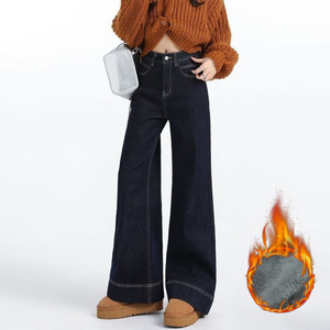 2025新款冬季高腰设计感时髦加绒加厚阔腿牛仔裤女垂感拖地裤子