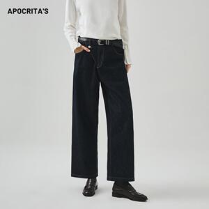 APO女装|跨境女士弯刀牛仔裤秋季设计高级感宽松显瘦半松紧腰长裤