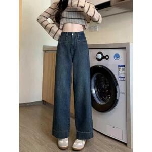 窄版直筒牛仔裤女显瘦2025年春秋季新款高腰小个子深蓝色阔腿裤子