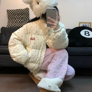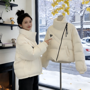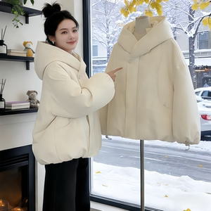 米白色短款连帽棉服女2025年冬季新款高级感面包服加厚保暖棉袄潮