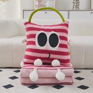 手拎多巴胺大眼二合一两用抱枕被沙发盖毯汽车靠垫办公室午休毯子