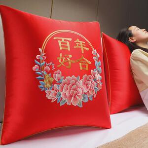 结婚抱枕一对婚庆床头靠垫喜字婚庆红色靠枕沙发婚床喜字枕套婚房