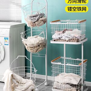 铁艺北欧风脏衣篮家用洗衣分类脏衣篓衣服收纳筐万向轮推车收纳篮