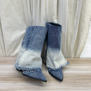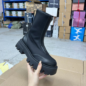 尖头纯色粗跟套筒长筒靴堆堆靴