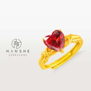 NANSHEN南奢 新中式高级唯爱小红心缠枝戒指L1509
