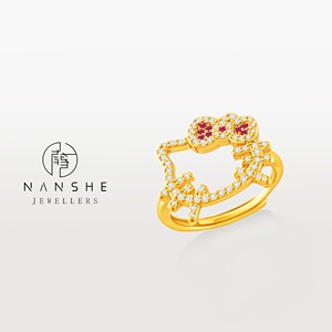 NANSHE/南奢 新中式满镶可爱猫猫少女心戒指 L1113
