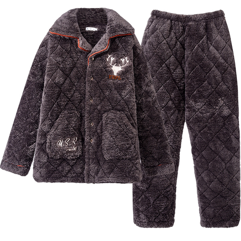 棉依界男珊瑚绒三层加厚睡衣保暖