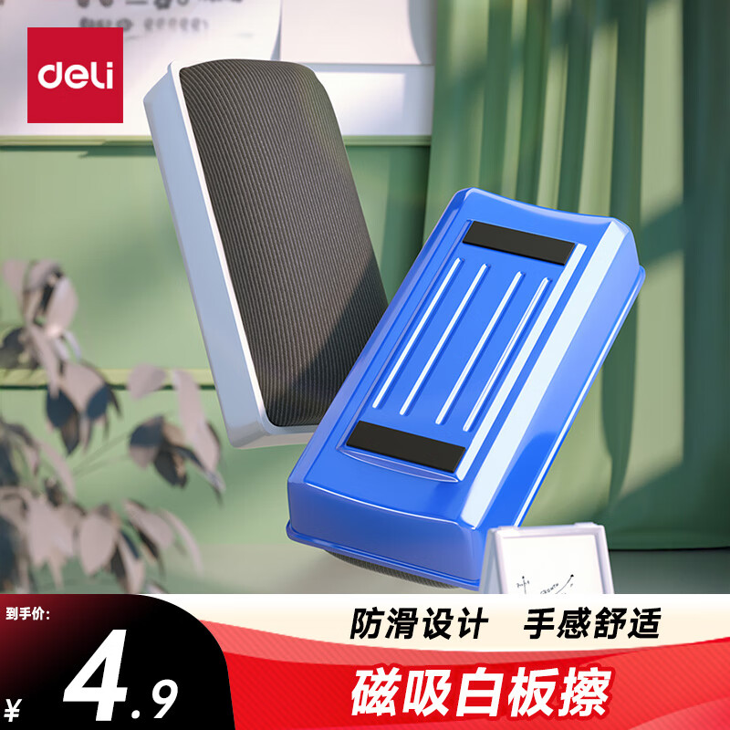 得力(deli) 112*55*40mm白板磁性白板擦背面吸附黑板擦 颜色随机白板配件 白板笔 可用7837