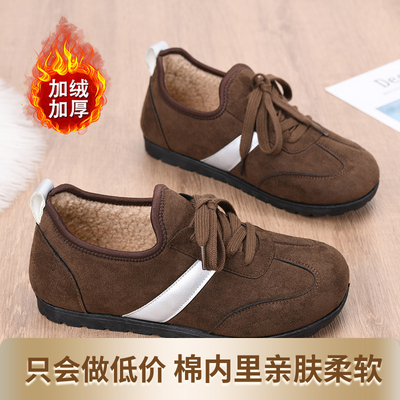 平底德训女鞋冬季新款加绒保暖棉鞋舒适软底防滑运动复古休闲鞋