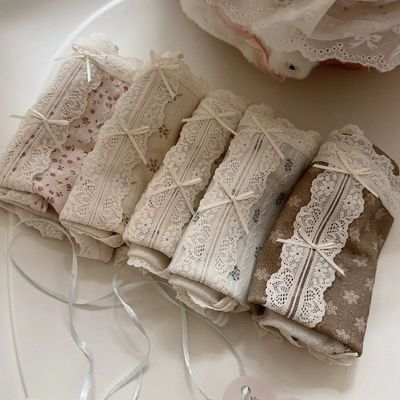 秋冬法式蕾丝花边小碎花内裤少女复古森系小众风透气棉包臀三角裤