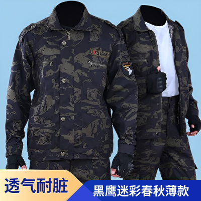 迷彩服黑鹰劳保工作服套装春秋薄款工地汽修仓管户外工装耐磨耐脏