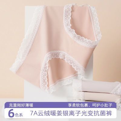 7A内裤女蕾丝边云绒暖姜蚕丝抗菌中腰简约纯色透气女士少女三角裤