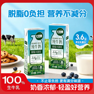 七点见纯牛奶脱脂灭菌乳3.6克原生蛋白200ml*12盒学生营养早餐奶